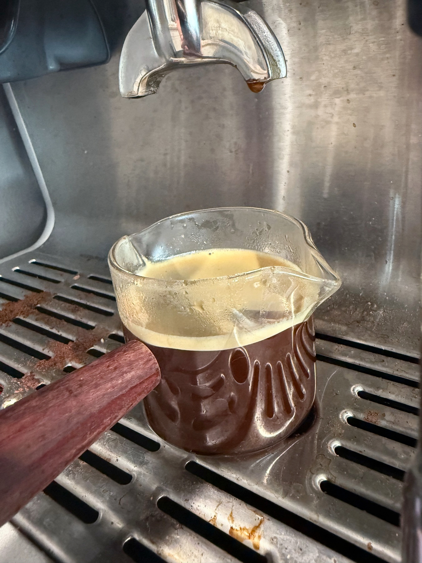 The third shot was richer, deeper—finally hitting that sweet spot where grind, dose, and fate align. Darker crema. Slower pull. A proper “we’re doing science” moment.